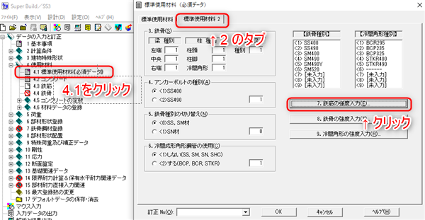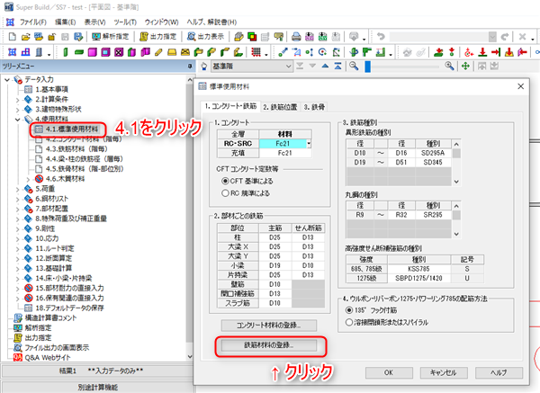 4.1 標準使用材料から、鉄筋データを入力します。