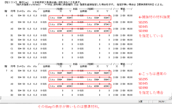そのため補強部材の耐力をプログラム内で計算させる場合は、SS3・SS7での入力時に、+49N/mm2されることを見込んだ鉄筋材料データを指定しておきましょう。